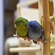 早速乗ってもらいましたが、止まり木間が離れすぎて移動ができない模様。サザナミインコって活発に動かないことが多いんでね…。